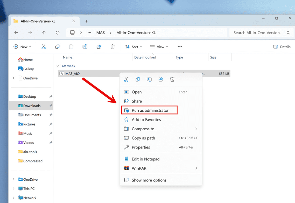** 4:** คลิกขวาที่ไฟล์ MAS_AIO แล้วเลือก **として実行管理者**