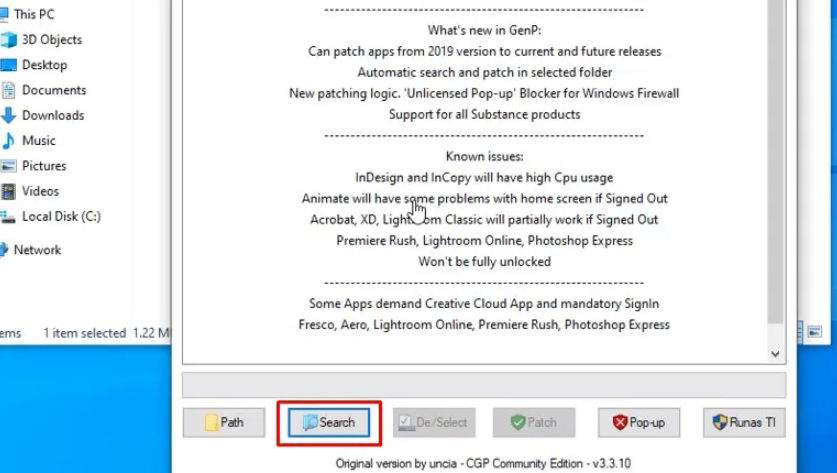 관리자를 사용하여 AdobeGenP 파일을 실행합니다.