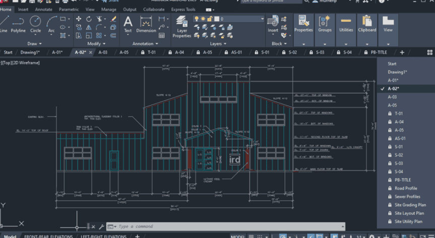• 2D 설계: 평면도, 단면도, 상세도, 구조 도면 등 정밀한 2차원 도면 작성