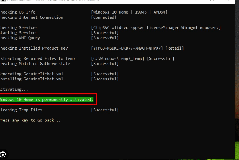 **ขั้นตอนที่ 5:** รอสักครู่ เมื่อปรากฏข้อความ “Activation successful” แสดงว่า Windows 11 ถูกเปิดใช้งานแล้ว
